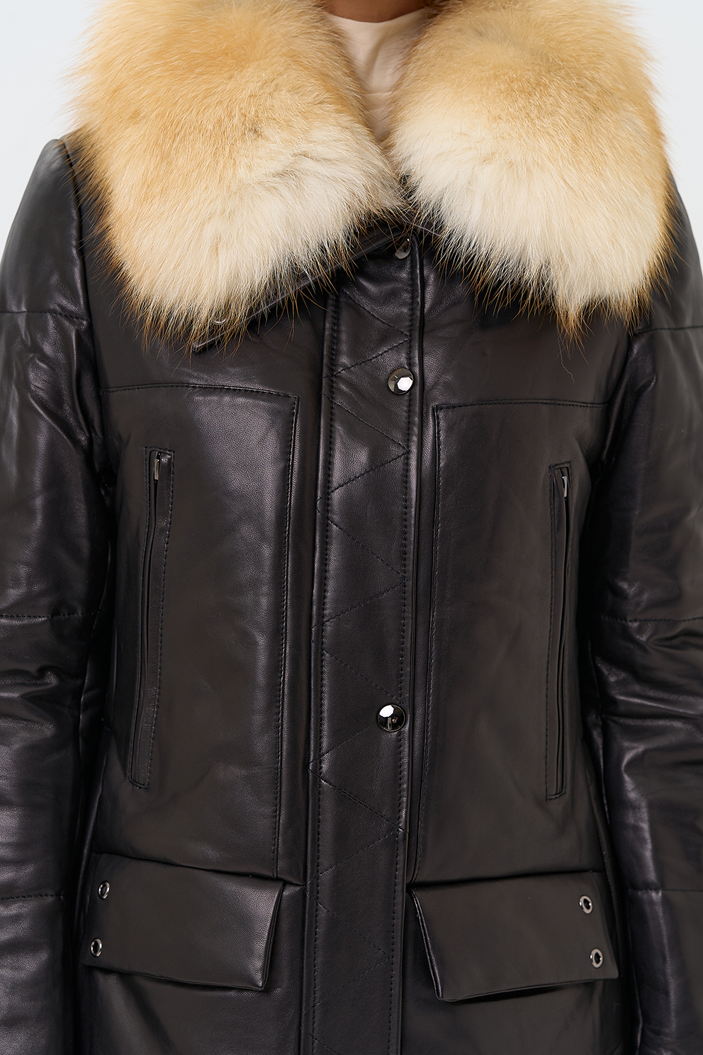 Пуховик из натуральной кожи