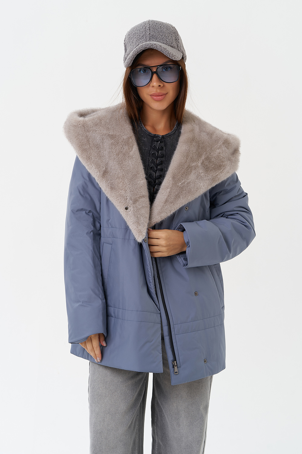 Крой воротника - капюшон, отделка эко мех под норку